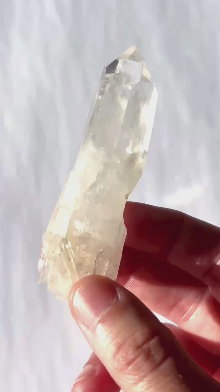 Le quartz lémurien “blue smoke” doit son nom à ce voile bleuté que l’on aperçoit à l’intérieur, résultant d’inclusions de cookeite. Cette variété de quartz lémurien est rare et peu connue.